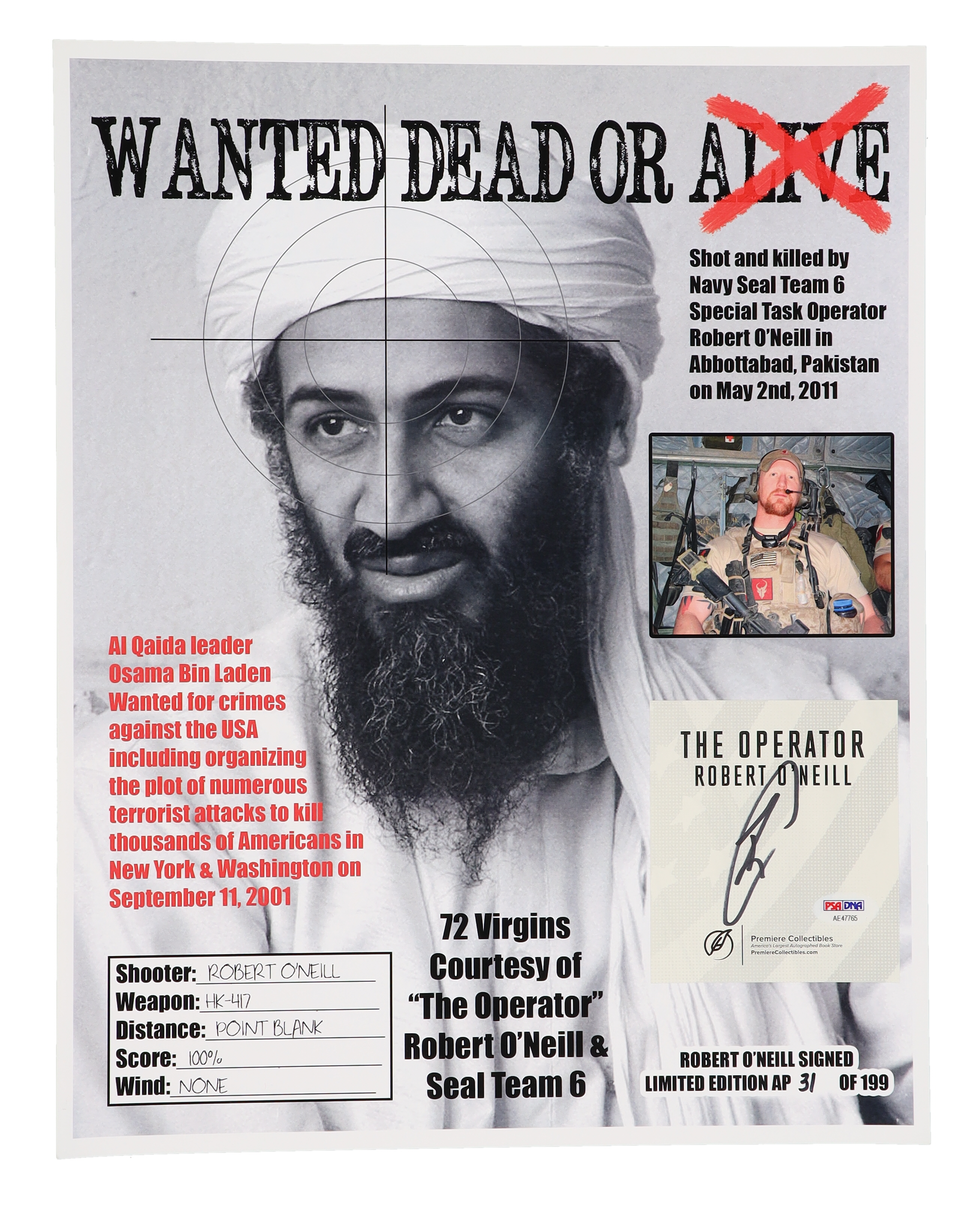 Robert J. O'Neill Signed LE "Bin Laden Wanted Dead or Alive" 13x16 Photo Print (PSA)