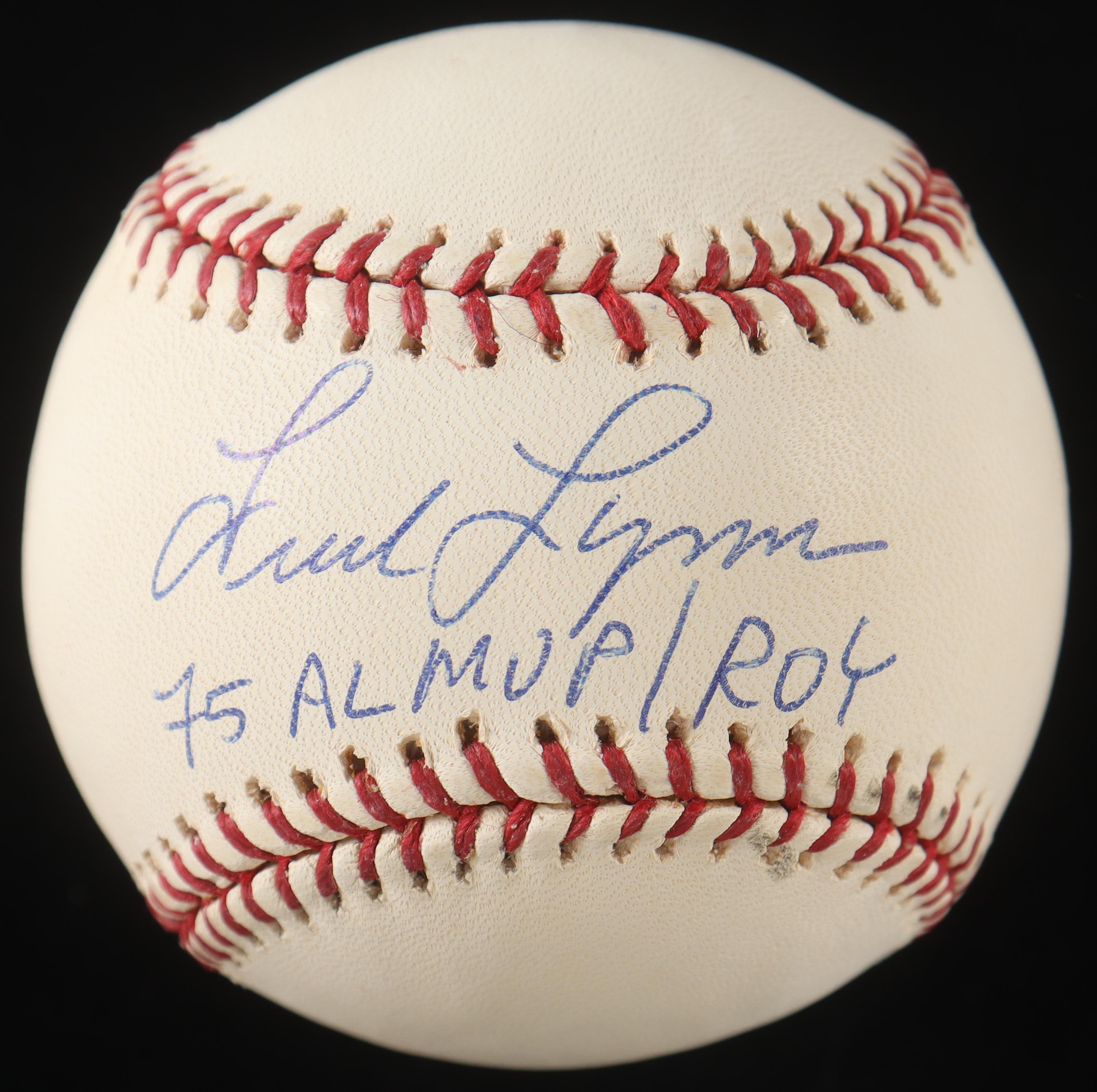 Fred Lynn Signed OML Baseball Inscribed "75 AL MVP / ROY" (TriStar & MLB)