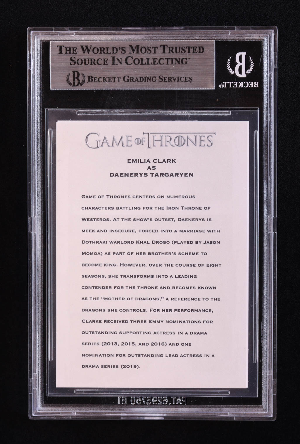 Emilia Clarke Signed "Game of Thrones" Custom Trading Card (BGS)