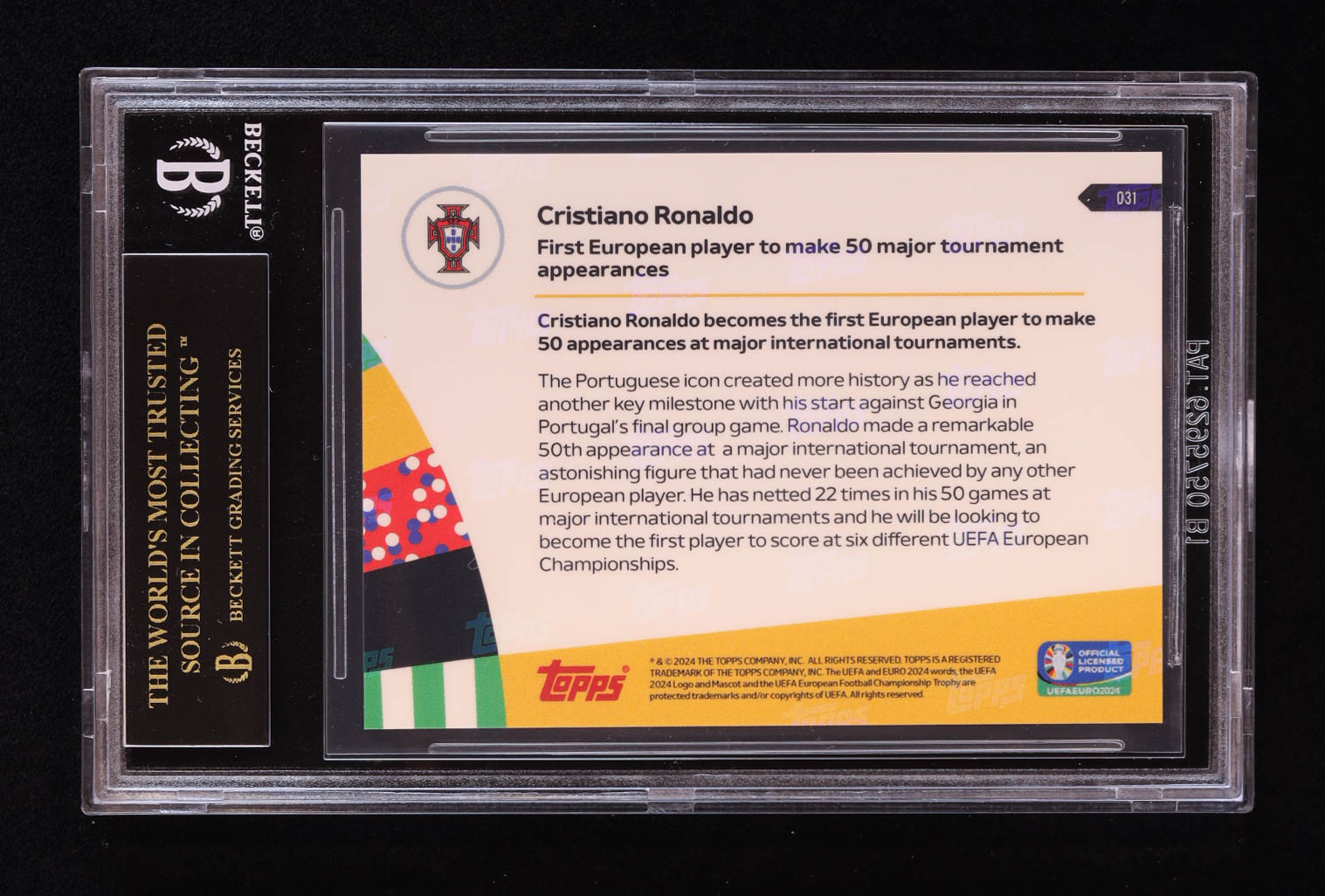 Cristiano Ronaldo 2024 Topps Now UEFA Euro #31 (BGS 10 | Pristine Black Label)