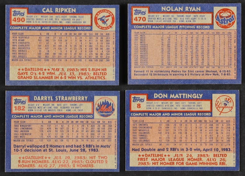 1984 Topps Baseball Complete Set of (792) Cards with Don Mattingly #8 RC, Cal Ripken #490, Darryl Strawberry #182 RC, Nolan Ryan #470