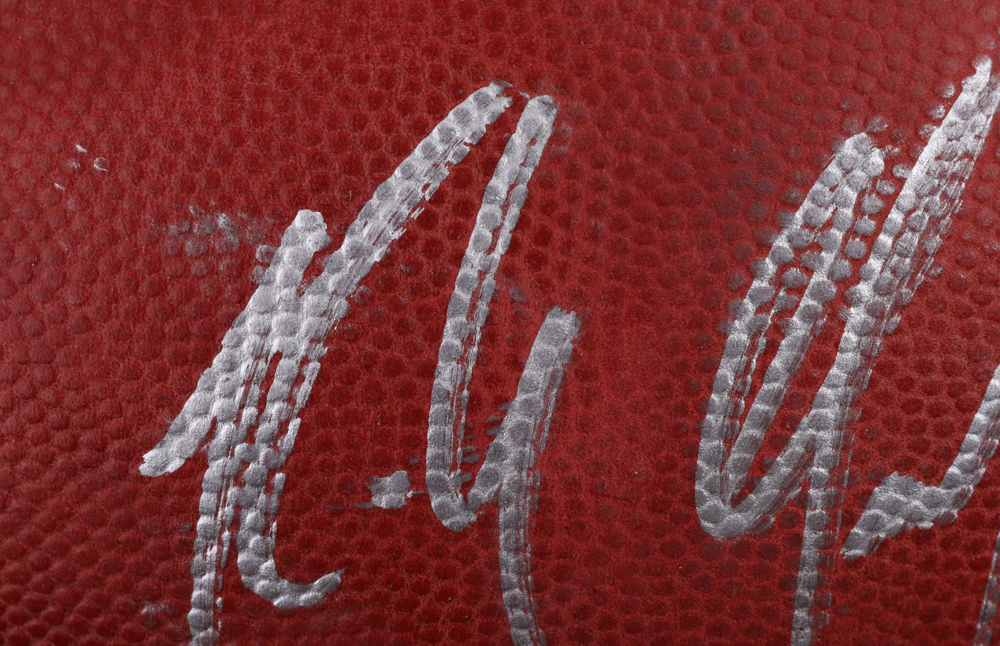 Wilson "The Duke" NFL Official Game football. Hand-signed by Rob Gronkowski (New England Patriots).