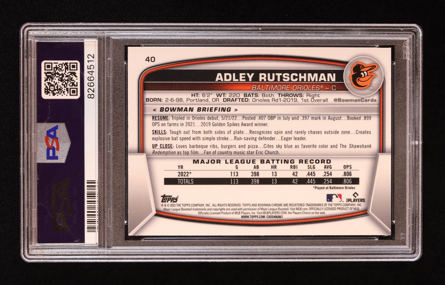Adley Rutschman 2023 Bowman Chrome Mega Box #40 RC (PSA 10)