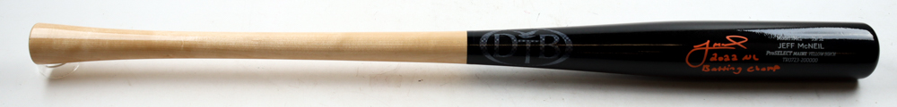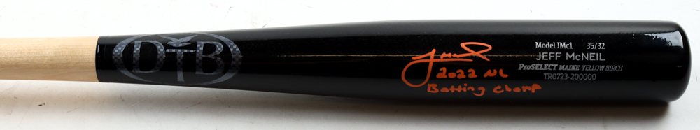 Jeff McNeil Signed DTB Baseball Bat Inscribed "2022 NL Batting Champ" (Fanatics)