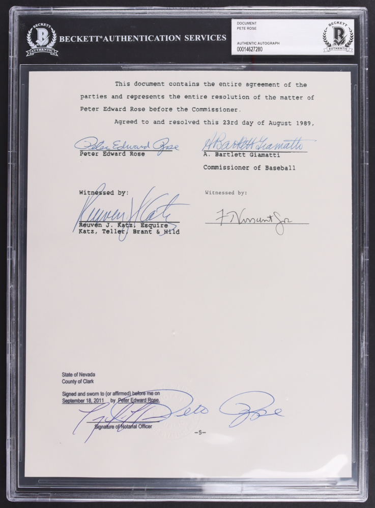 Pete Rose Signed "Banned from Baseball" Document (Beckett)