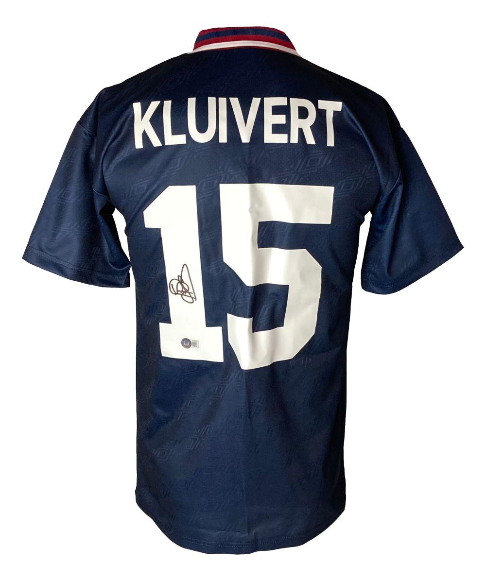 Umbro style jersey with everything pressed on, size L. Hand-signed by Patrick Kluivert.
