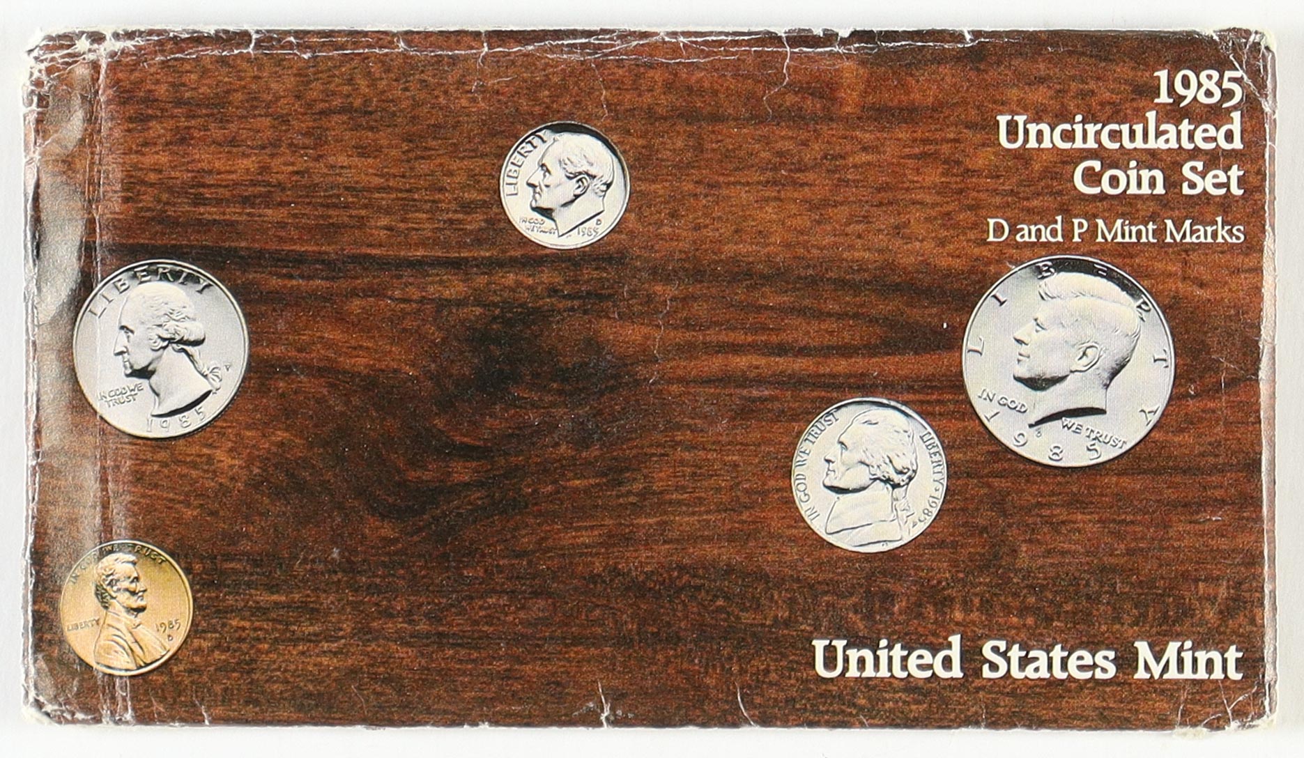1985 Uncirculated Denver & Philadelphia Mint Souvenir (10) Coin Set with Mint Tokens. Please see photos for details regarding the condition of the coin.