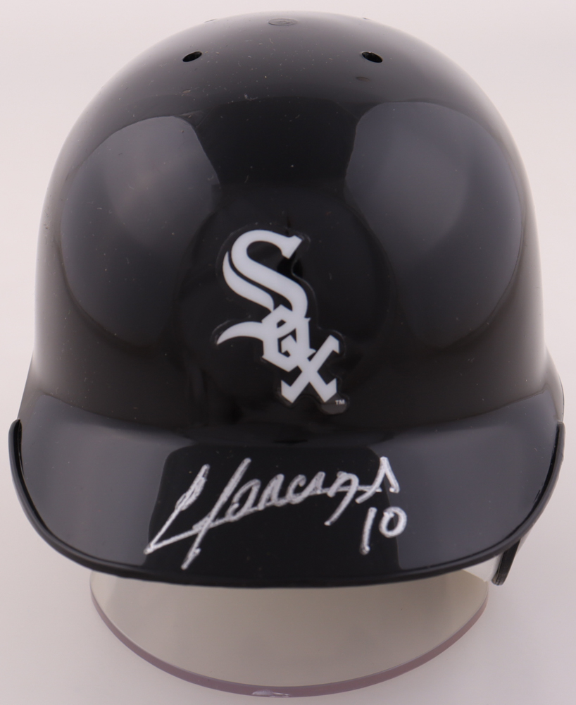 Riddell Chicago White Sox baseball mini helmet. Hand-signed by Yoan Moncada.