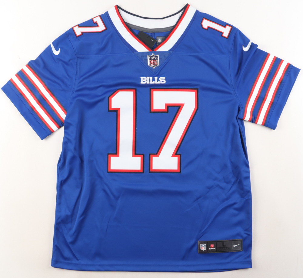 Nike style jersey with everything sewn on, size L. Hand-signed by Josh Allen (Buffalo Bills).