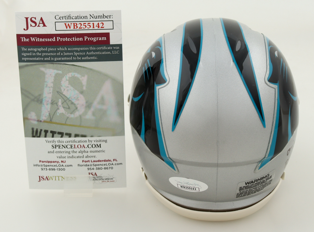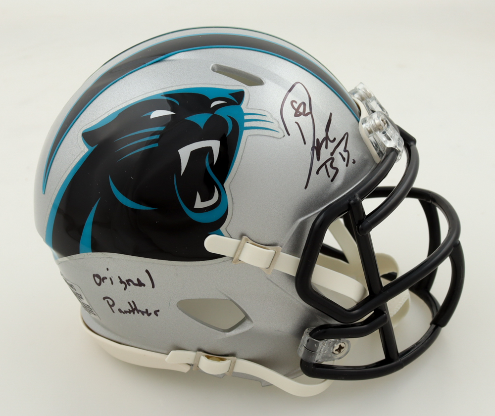 Riddell Carolina Panthers speed mini helmet has been hand-signed and inscribed by Don Beebe.