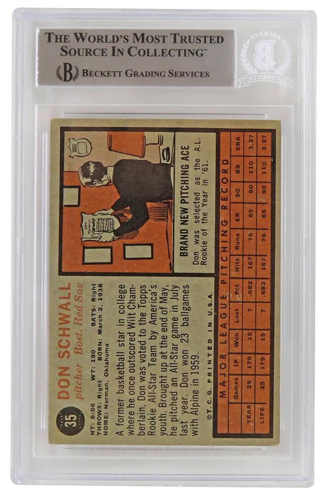 Don Schwall Signed 1962 Topps #35 Inscribed "61 AL ROY" (BGS)
