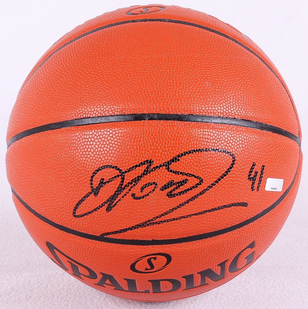 Full-size Spalding NBA Game Ball Series basketball. Hand-signed in black felt-tip pen by Dirk Nowitzki (Dallas Mavericks).