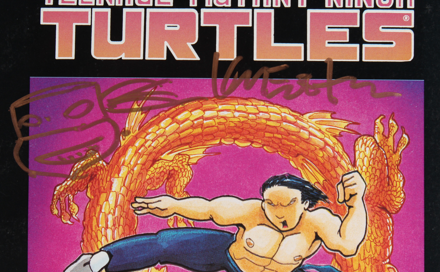 This original Teenage Mutant Ninja Turtles comic book is hand-signed along with an original turtles sketch by co-creater of the Teenage Mutant Ninja Turtles, Kevin Easmtan.