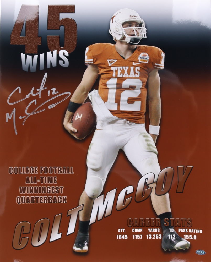 Photo measures 16" x 20" in size and has been hand-signed by Colt McCoy.