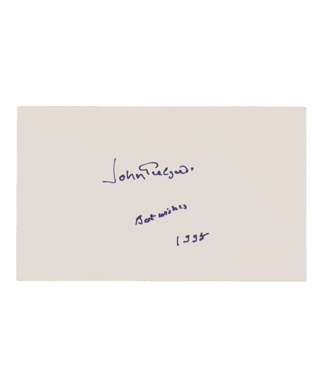 John Gielgud Signed Index Card Inscribed "Best Wishes" & "1995" (AutographCOA)