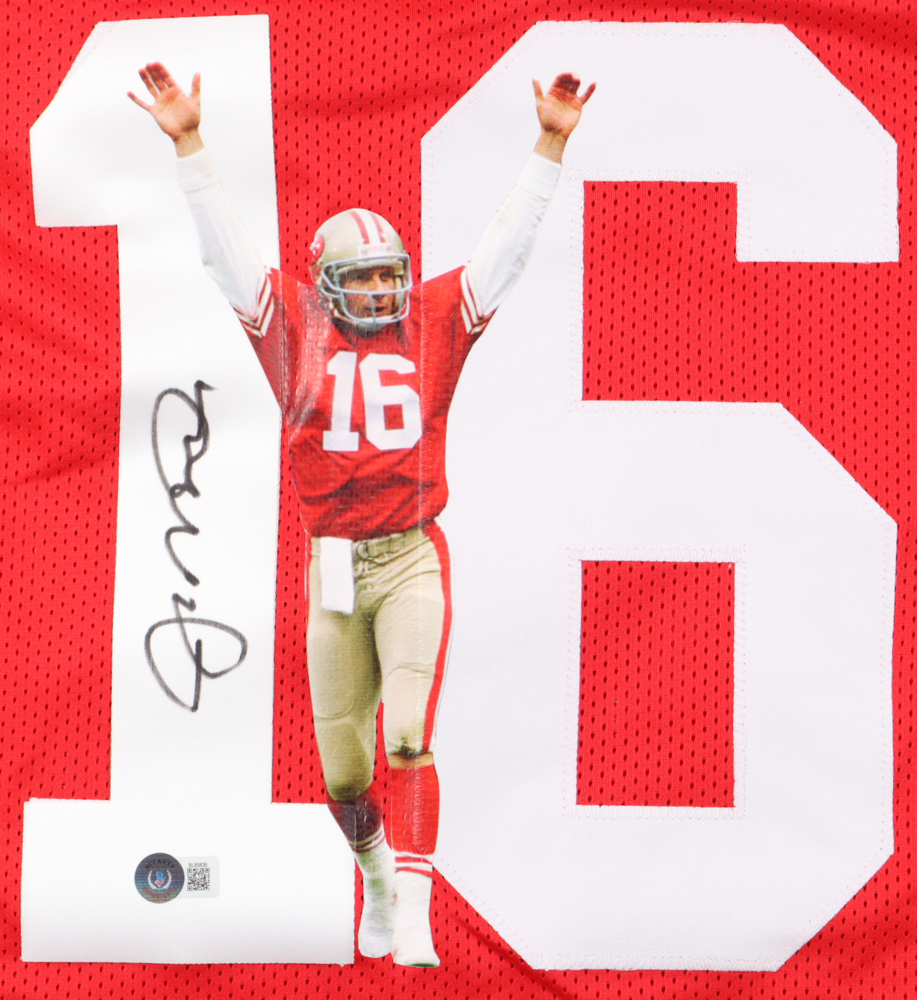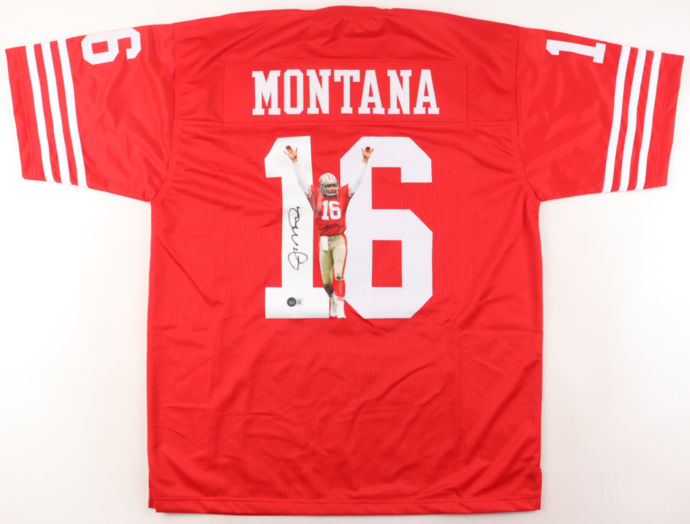 Custom jersey. Everything is sewn on, size XL. Hand-signed by Joe Montana (HOF).