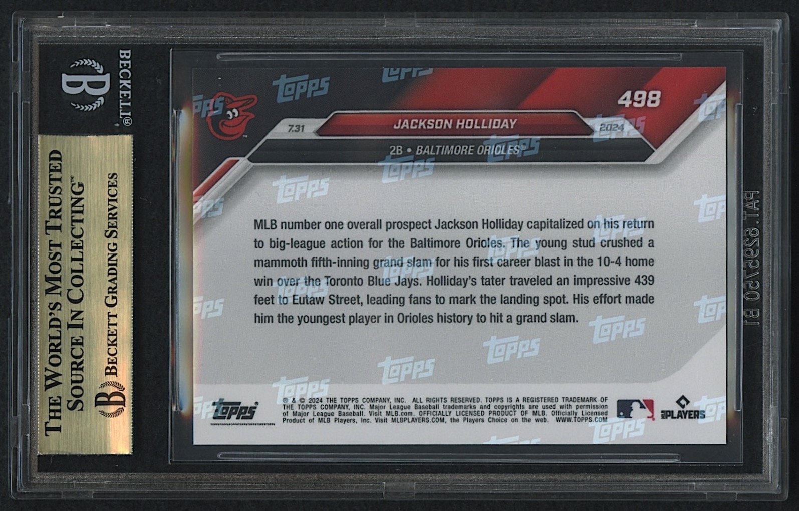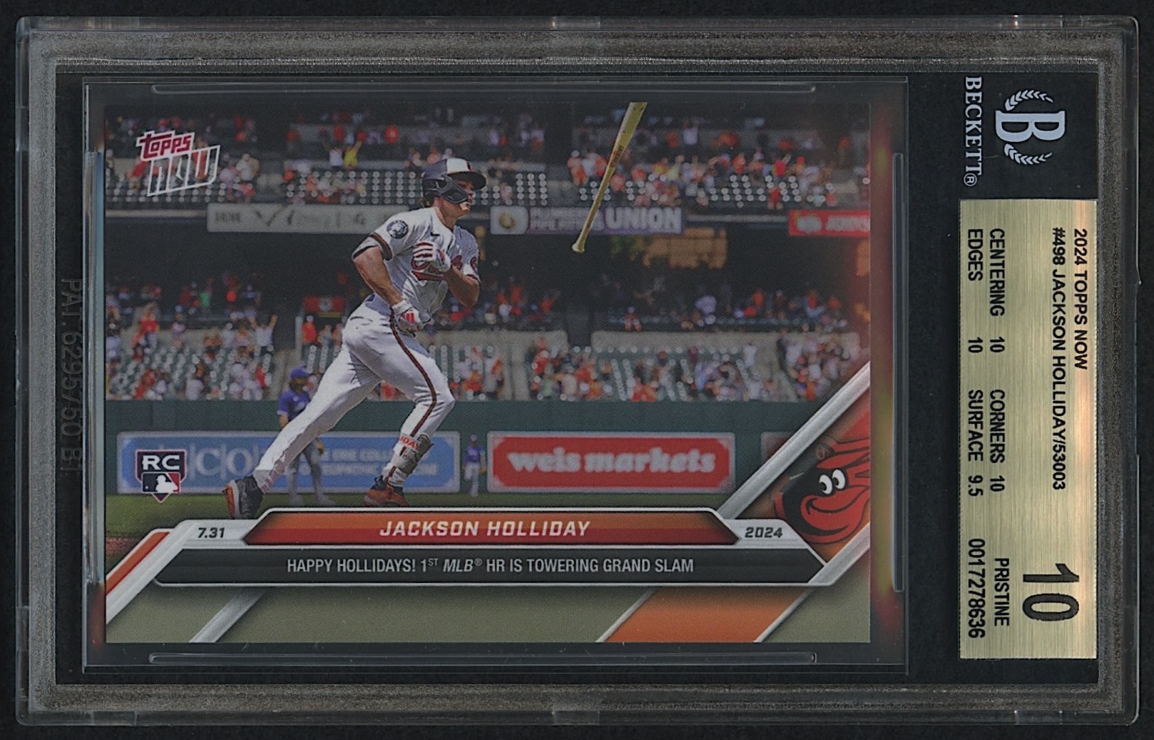 Jackson Holliday 2024 Topps Now #498 RC (BGS 10)