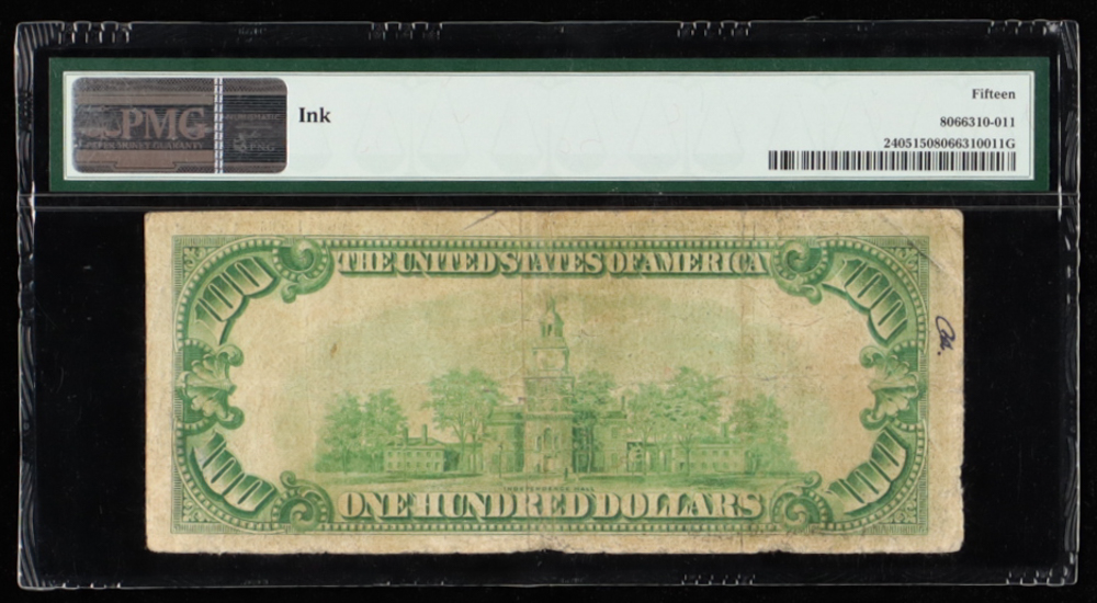 1928 U.S. $100 Gold Certificate - Fr. 2405 (AA Block) Woods | Mellon (PMG 15)
