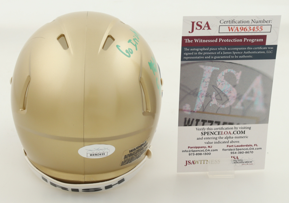 Mitchell Evans Signed Notre Dame Fighting Irish Speed Mini Helmet Inscribed "Go Irish!" (JSA)
