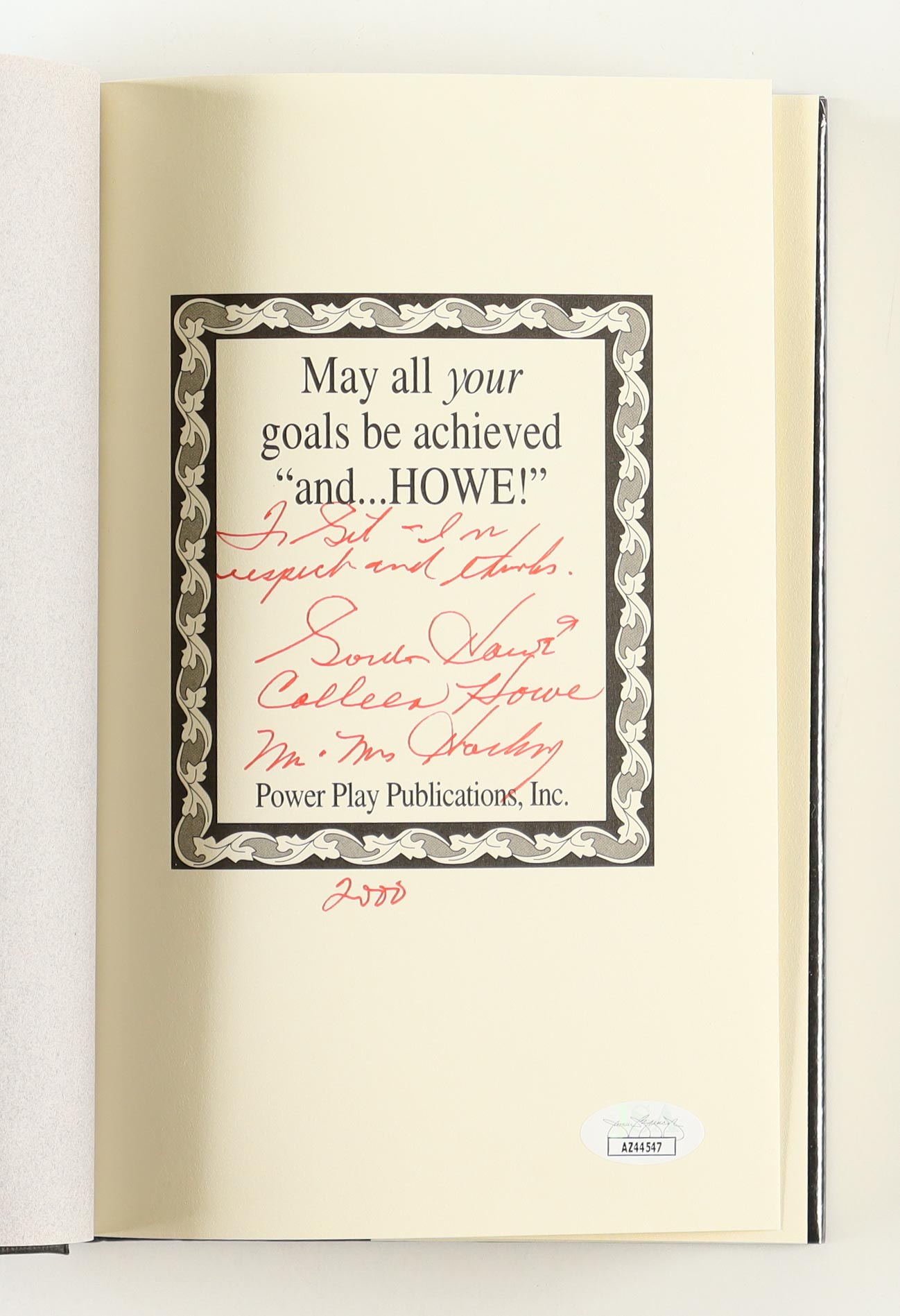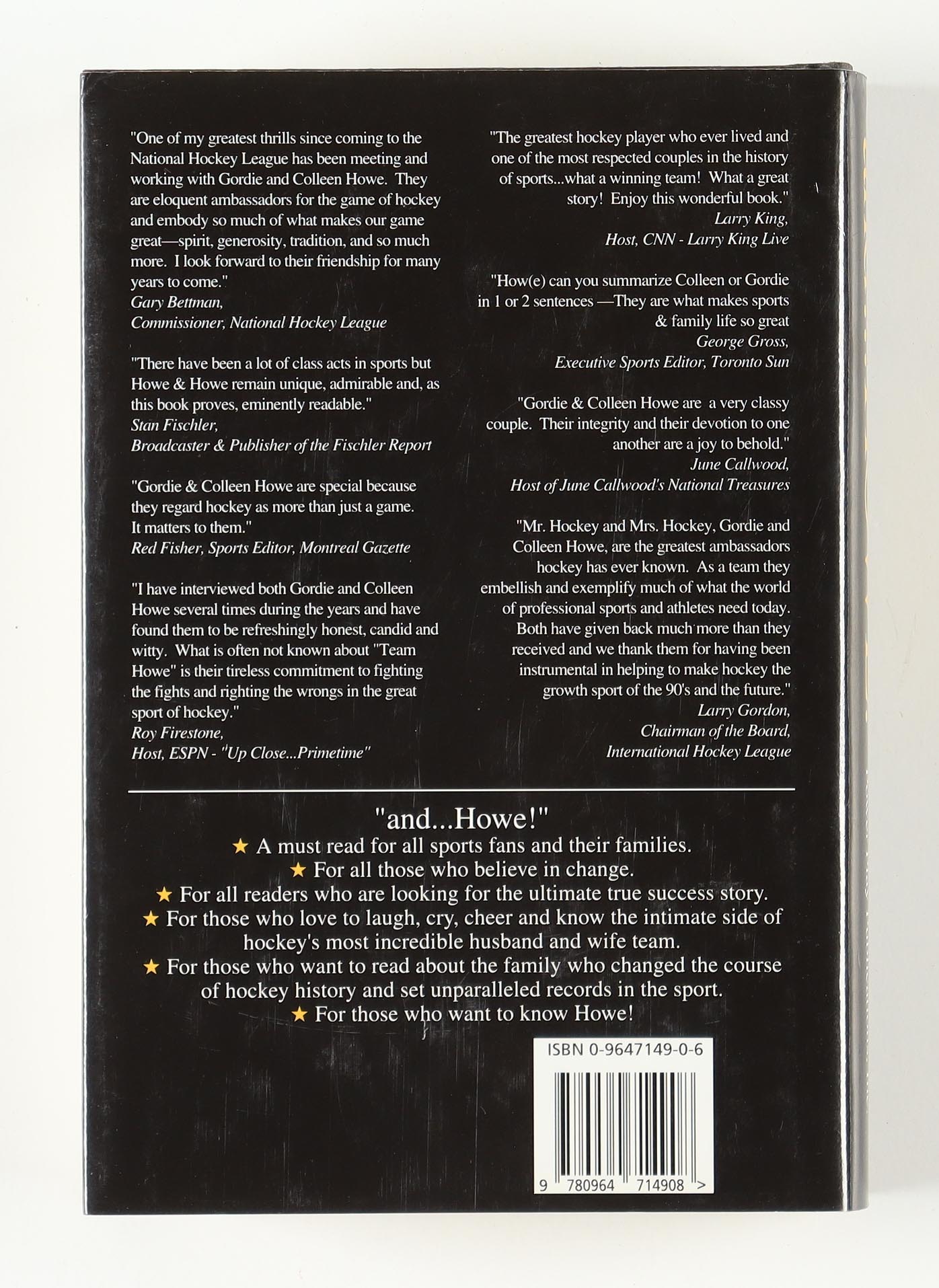 "And ...Howe!" Hard Cover Book. Hand-signed and inscribed inside cover page by Gordie Howe (D. 2016) and Colleen Howe (D. 2009). Please note, there is some scuffing and edge wear on the dust jacket.