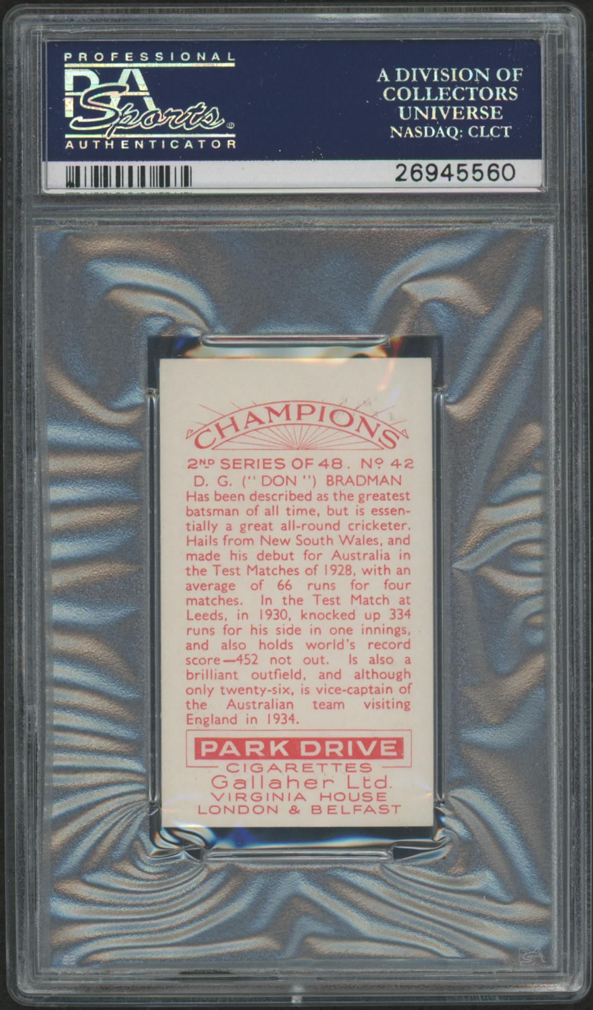 1935 Gallaher "Champions" #42 Don Bradman All-time Great Cricketer Batsman (PSA 9)