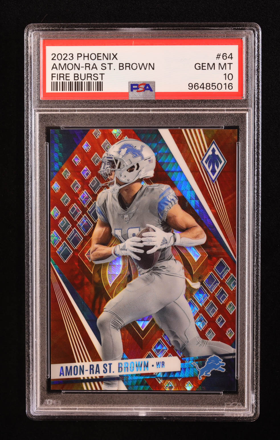 Amon-Ra St. Brown 2023 Panini Phoenix Fire Burst #64 #96/340 (PSA 10)