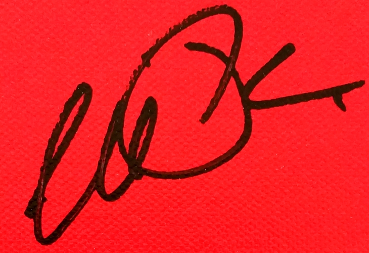 Custom framed canvas display measures 22" x 25" in size and has been hand-signed in black felt-tip pen by Al Pacino.