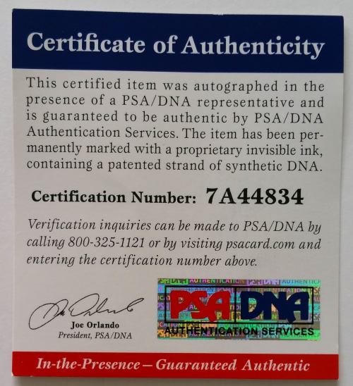 The lot / autograph(s) includes an official PSA/DNA hologram and matching COA for authenticity purposes. The signing of this item was witnessed by PSA.