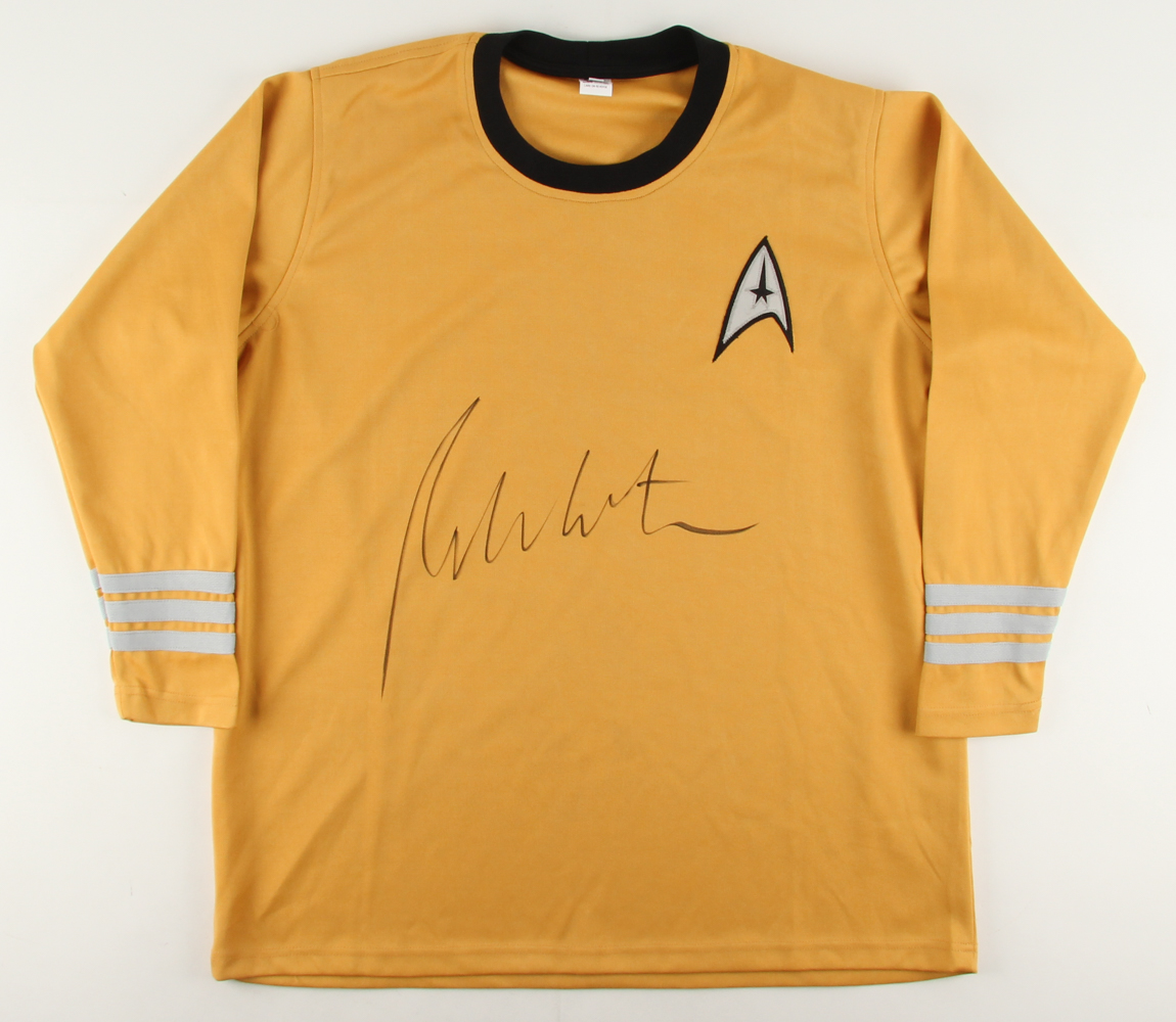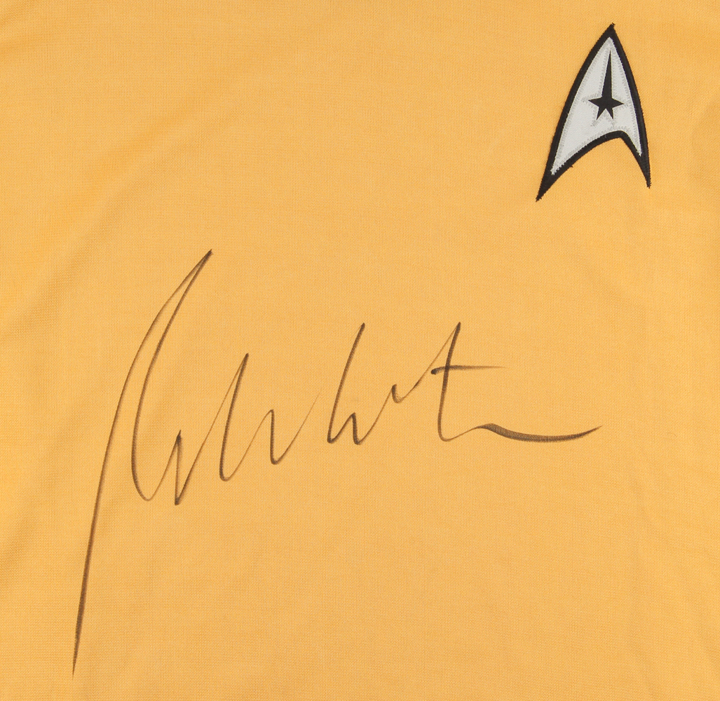 High-quality replica Captain uniform shirt, size XL. hand-signed in black felt tip pen by William Shatner.