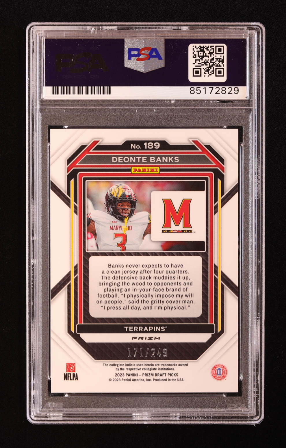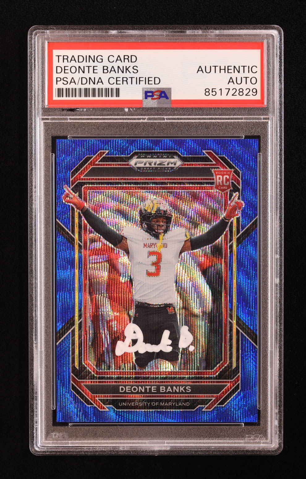 Deonte Banks Signed 2023 Panini Prizm Draft Picks Prizms Blue Wave #189 #171/249 RC (PSA)