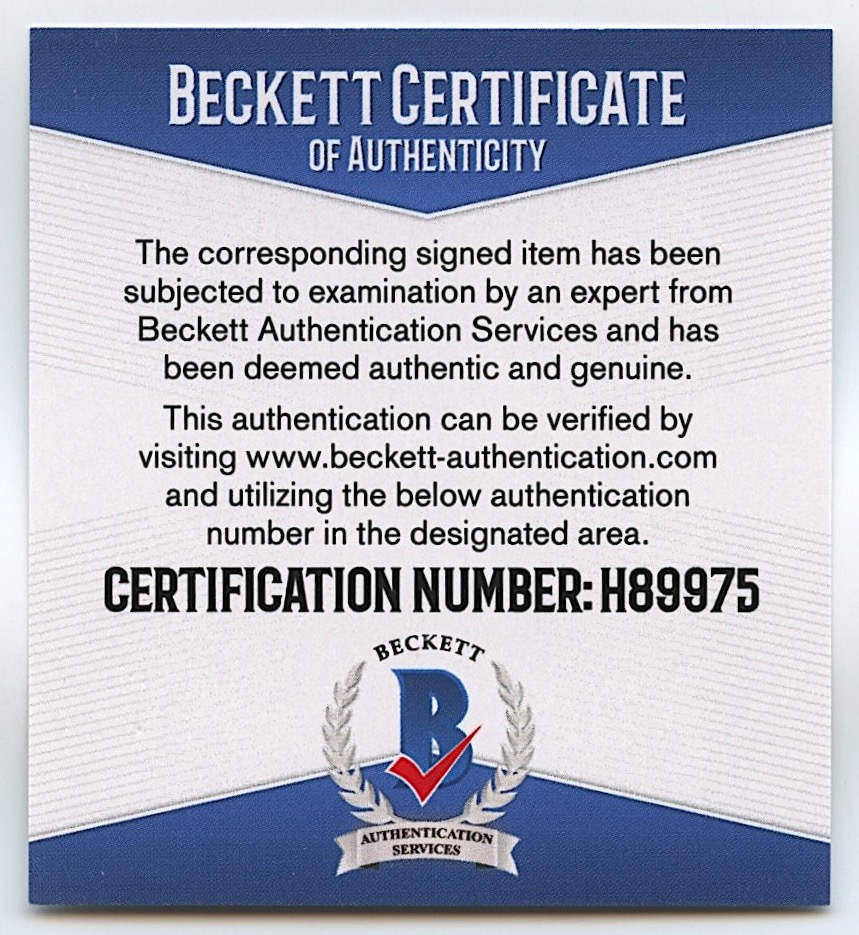 The autograph includes an official Beckett Authentication Services serially numbered hologram and matching COA for authenticity purposes.
