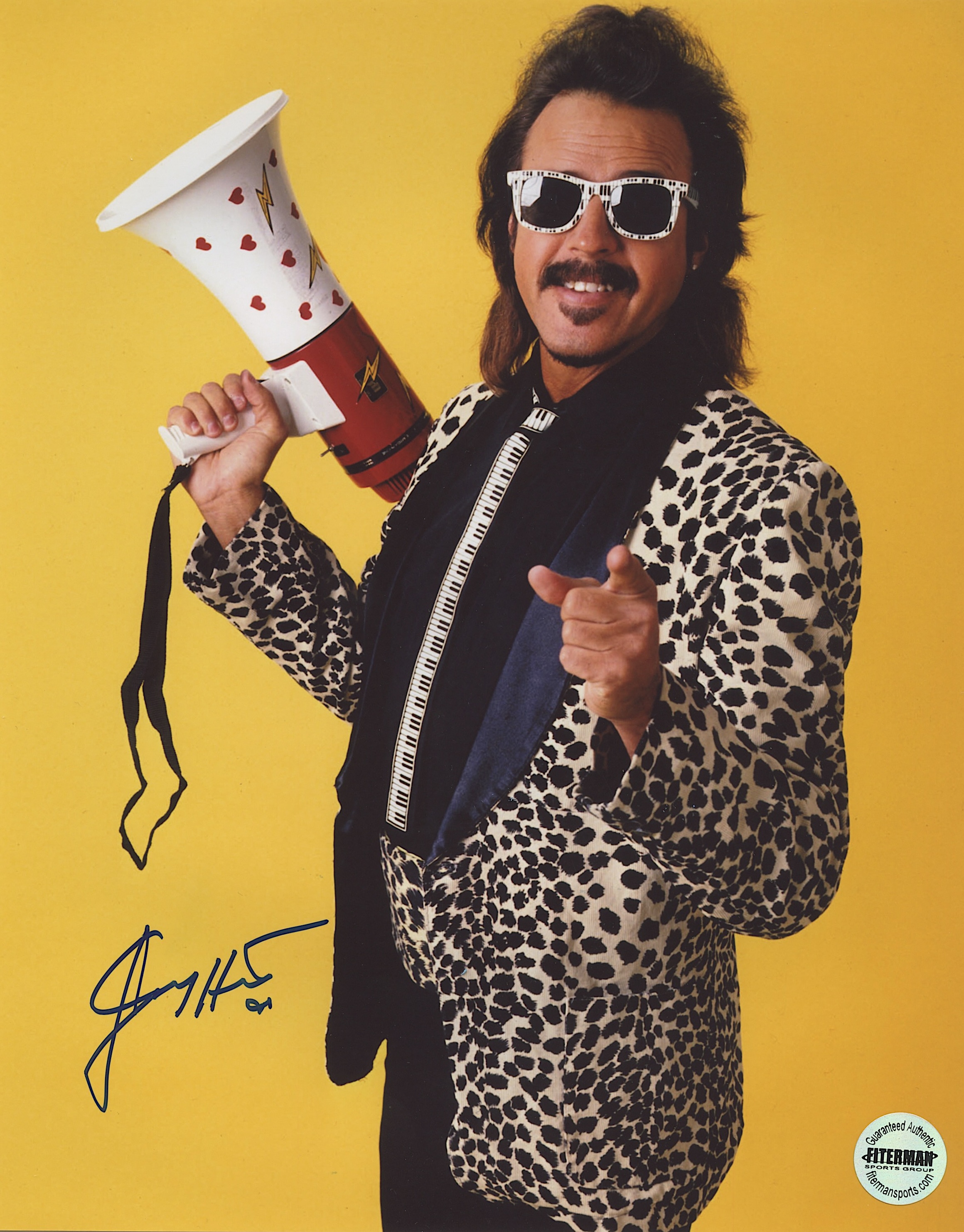 Photo measures 8" x 10" in size and has been hand-signed by Jimmy Hart (WWE HOF).