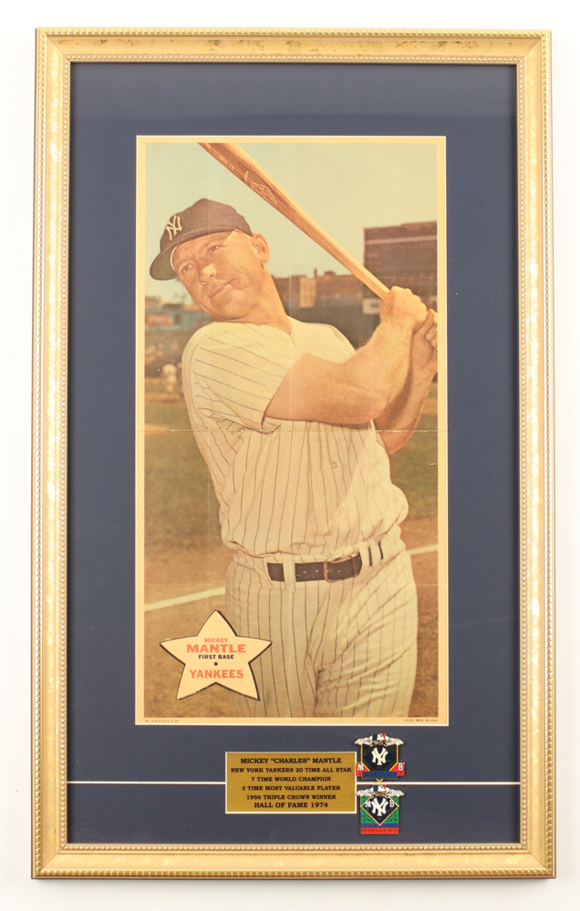 Mickey Mantle Topps 1968 #18 Custom Framed Poster Insert With 1953 & 1956 Official World Series Pins