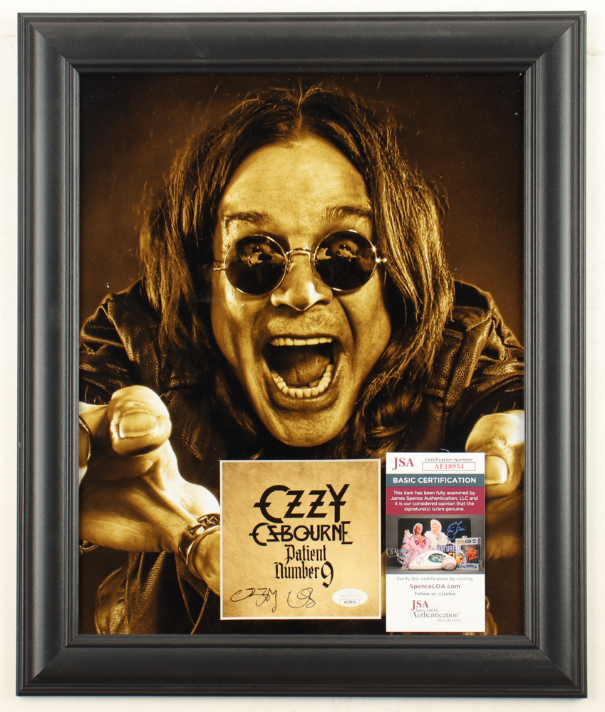 Custom frame measures approximately 16" x 19" in size. Features a "Patient Number 9" CD insert that has been hand-signed by Ozzy Osbourne.