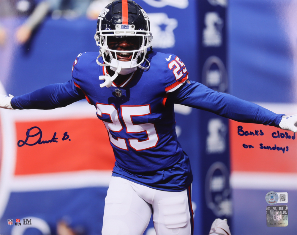 Deonte Banks Signed Giants 11x14 Photo Inscribed "Banks Closed On Sundays" (Beckett)