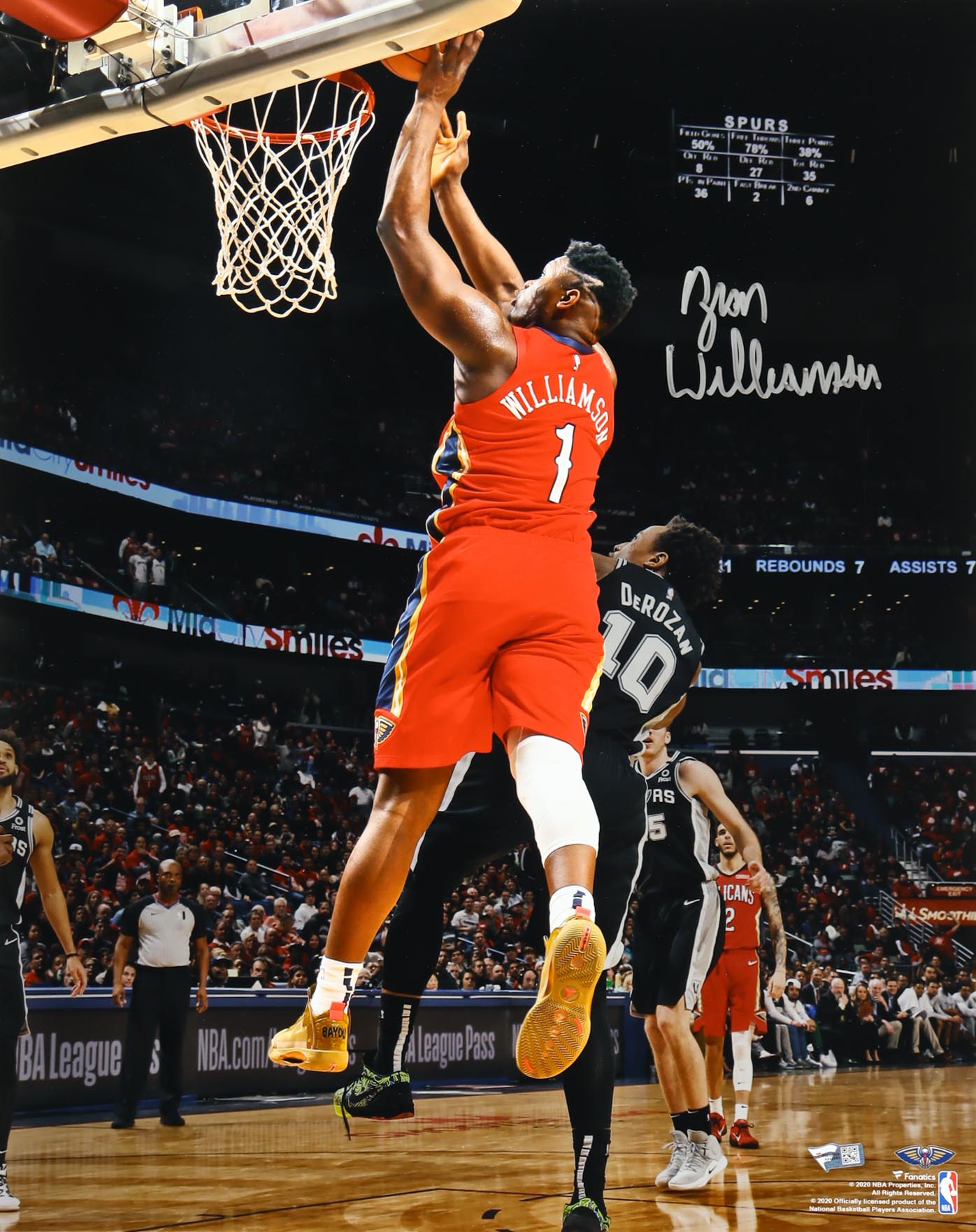 Photo measures 16" x 20" in size and has been hand-signed by Zion Williamson (New Orleans Pelicans).