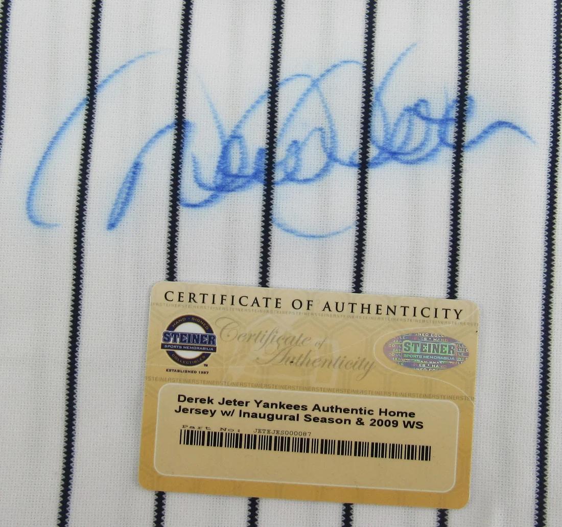 Derek Jeter Signed Yankees Majestic Style Jersey with 2009 Yankee Stadium Inaugural Season & World Series Patches (Steiner)