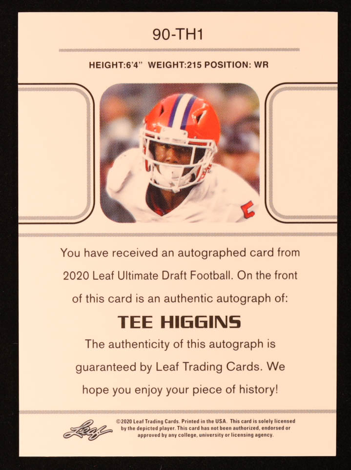 Tee Higgins 2020 Leaf Ultimate Draft Autographs Gold #90TH1 RC #19/30
