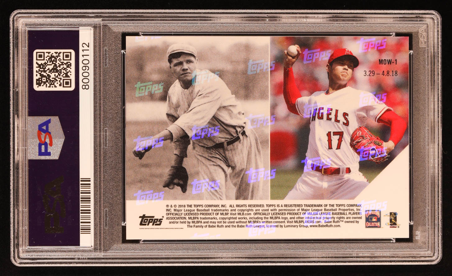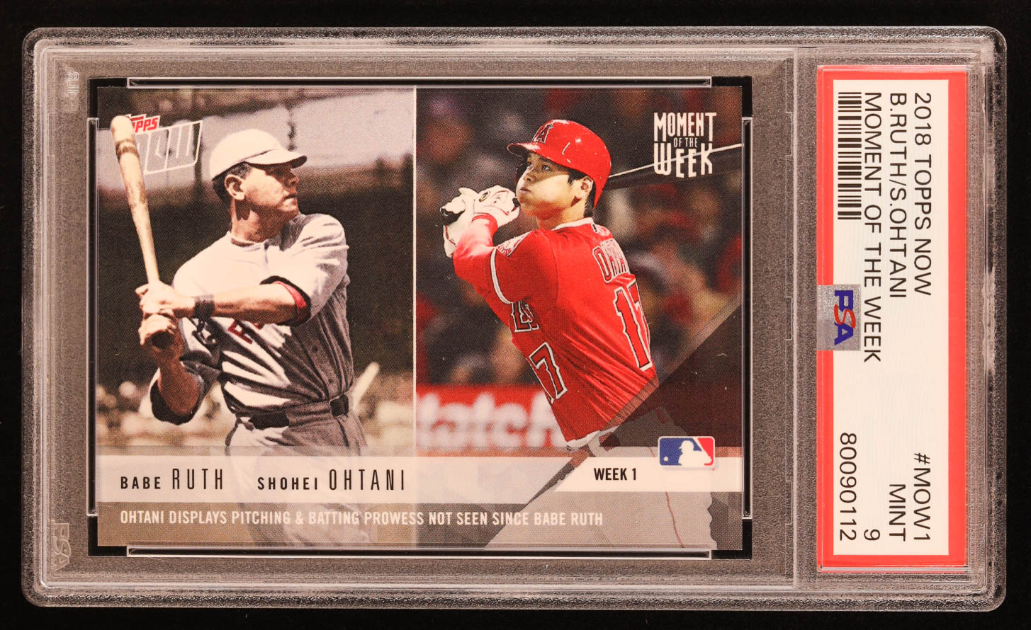 Babe Ruth / Shohei Ohtani RC 2018 Topps Now Moment of the Week #MOW1 (PSA 9)