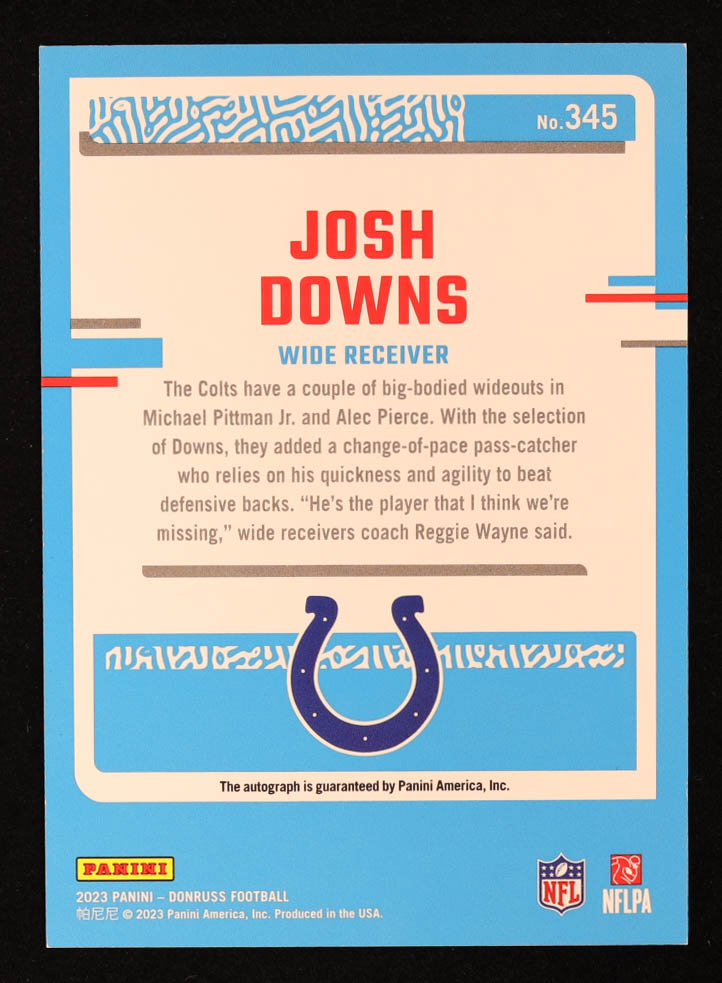 Josh Downs 2023 Donruss Rated Rookie Signatures Blue #345 RC