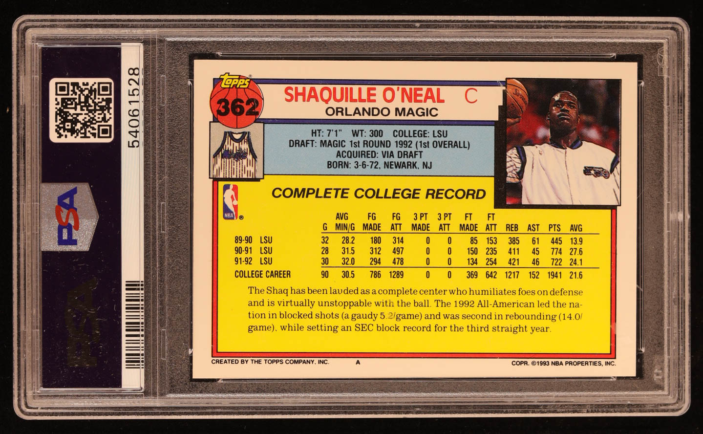 Shaquille O'Neal 1992-93 Topps #362 RC (PSA 9)