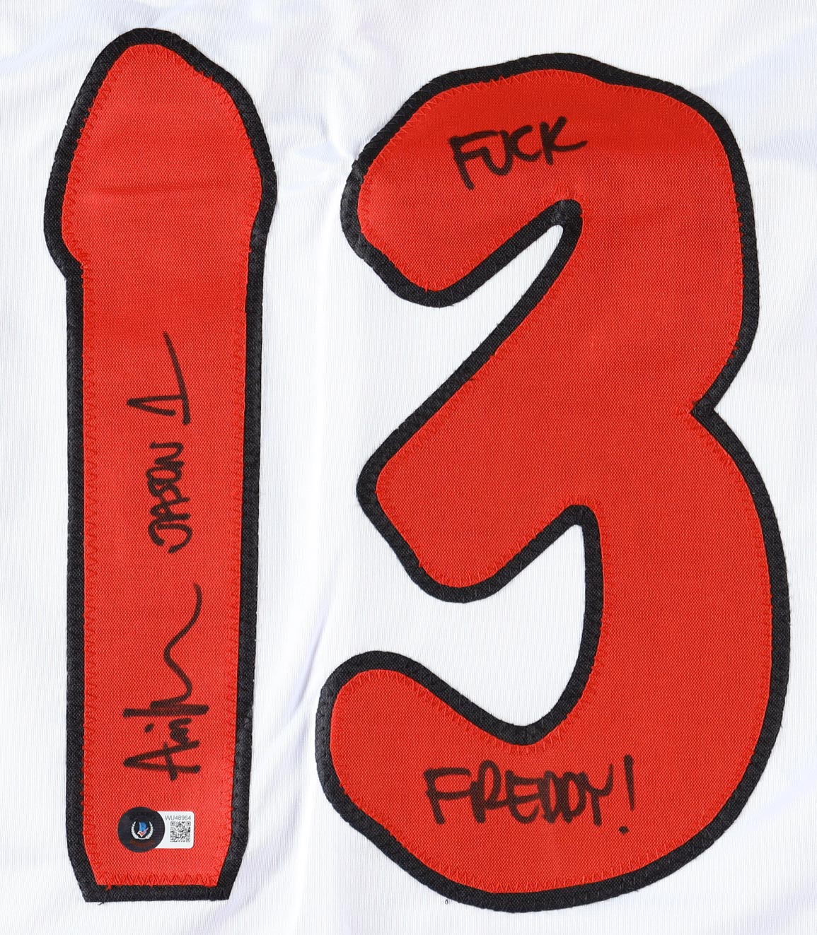 Ari Lehman Signed "Friday the 13th" Jersey Inscribed "Jason 1" & "F*** Freddy!" (Beckett)