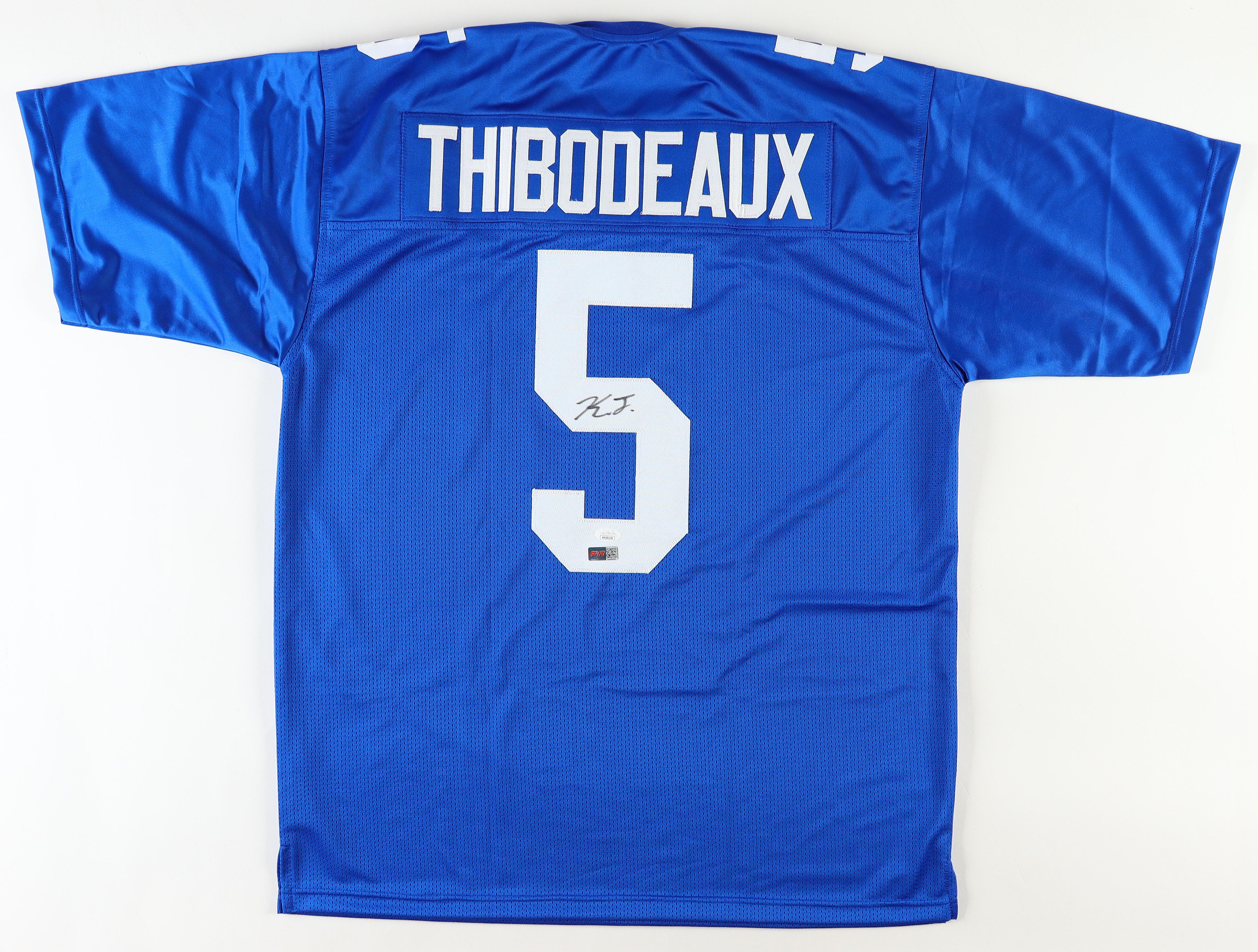 Custom jersey, everything sewn on, size XL. Hand-signed by Kayvon Thibodeaux.
