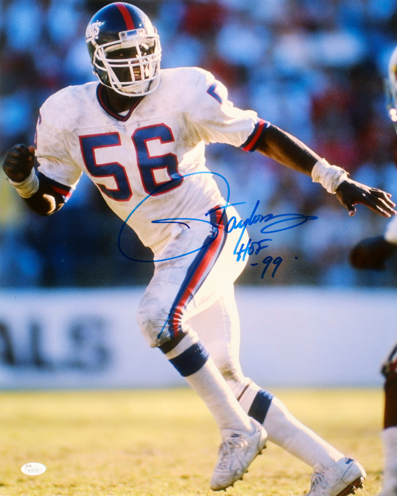Photo measures 16" x 20" in size and has been hand-signed and inscribed by Lawrence Taylor (New York Giants, HOF).
