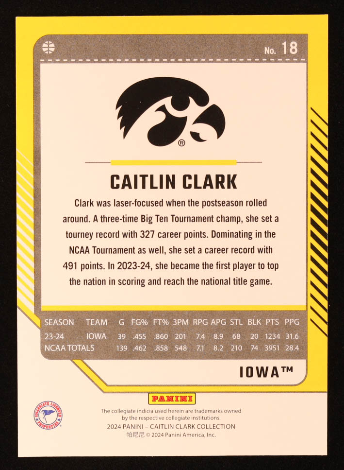 Caitlin Clark 2024 Panini Caitlin Clark Collection Donruss #18 RC