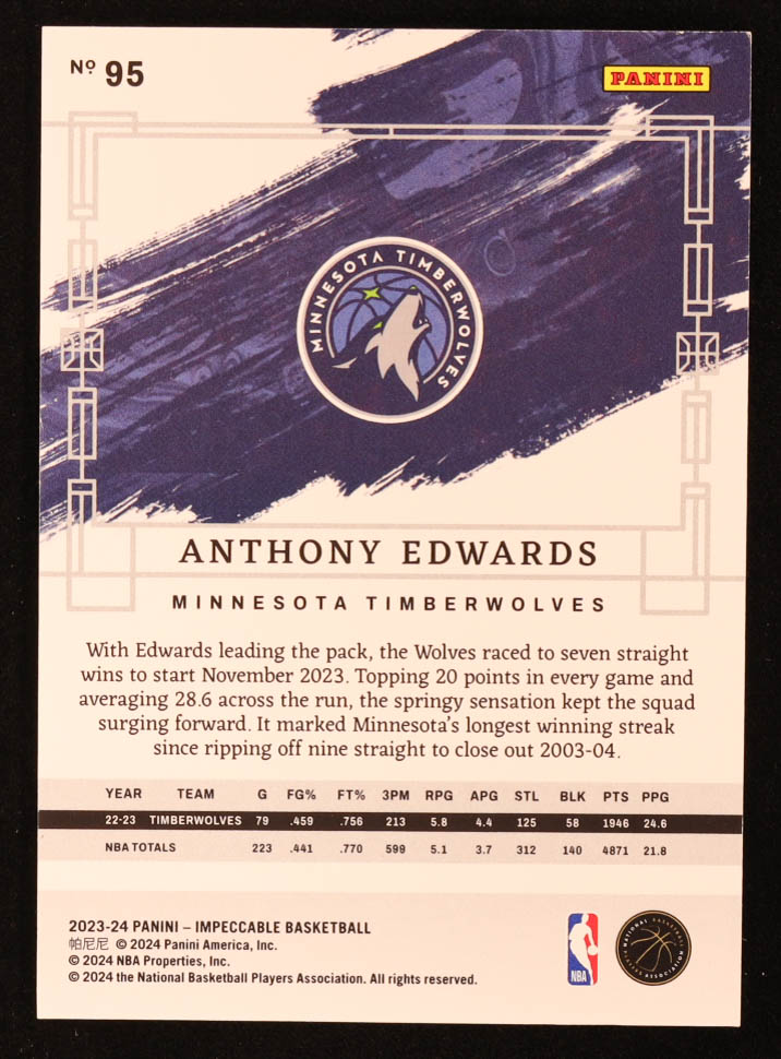 Anthony Edwards 2023-24 Panini Impeccable Silver #95 #36/75