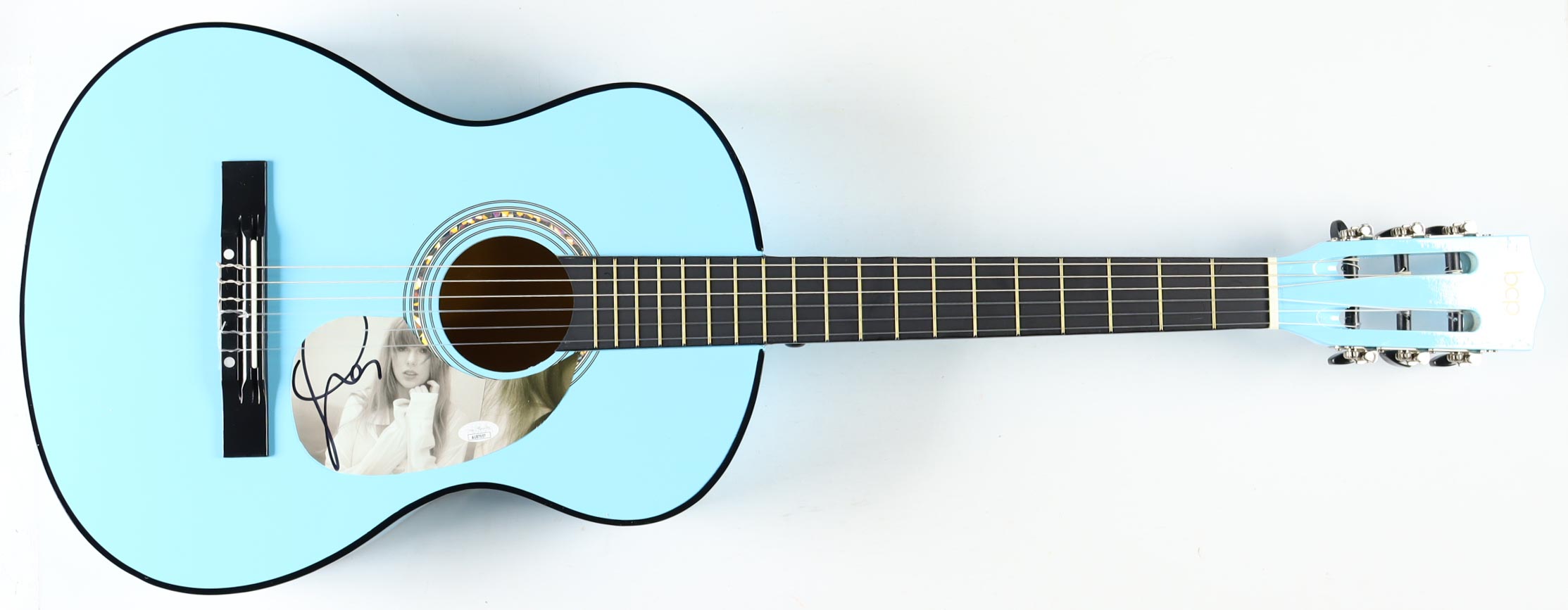 BCP Acoustic guitar measures approximately 38" in length and has been hand-signed on a CD cover that has been repurposed as a pick-guard by Taylor Swift.