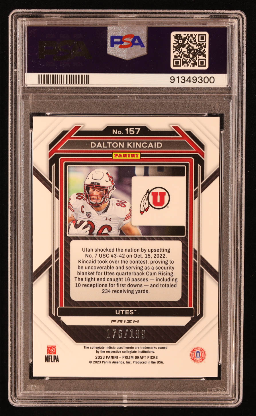 Dalton Kincaid 2023 Panini Prizm Draft Picks Prizms Blue #157 #176/199 RC (PSA 9)