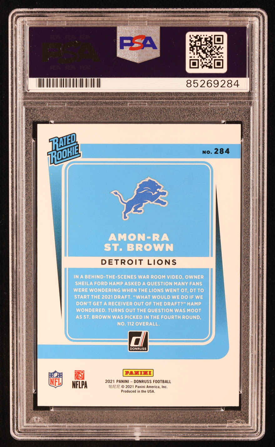 Amon-Ra St. Brown Signed 2021 Donruss #284 RR RC (PSA | Autograph Grade 10)