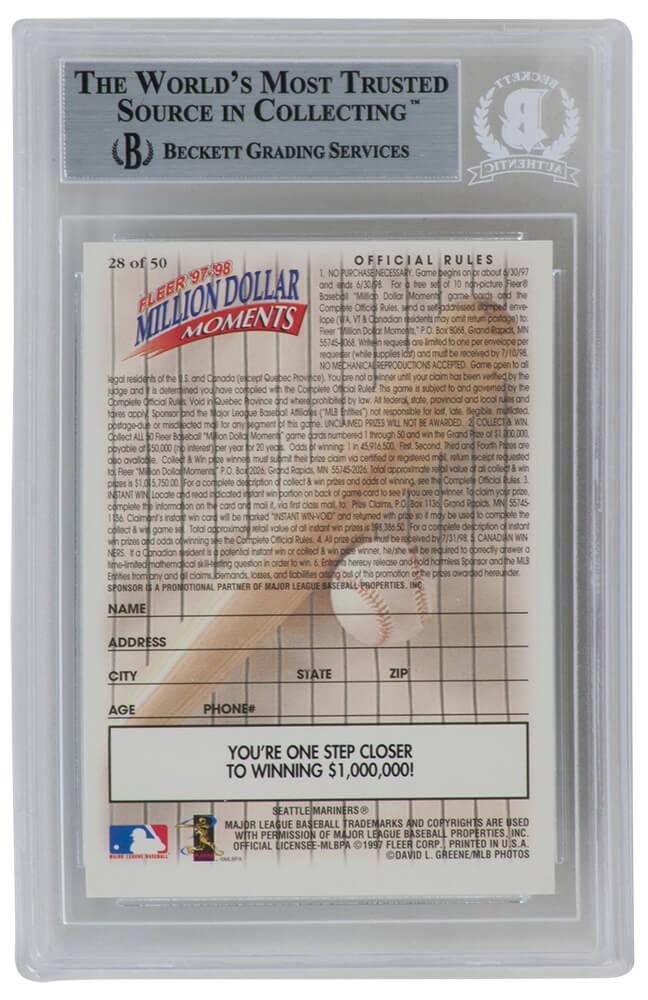 Alex Rodriguez Signed 1997-98 Fleer Million Dollar Moments Redemption #28 (BGS)